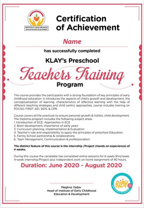 - You will be trained on The Protection of Children from Sexual Offences Act,2012 (POCSO), FIRST AID, SIDS and CPR.