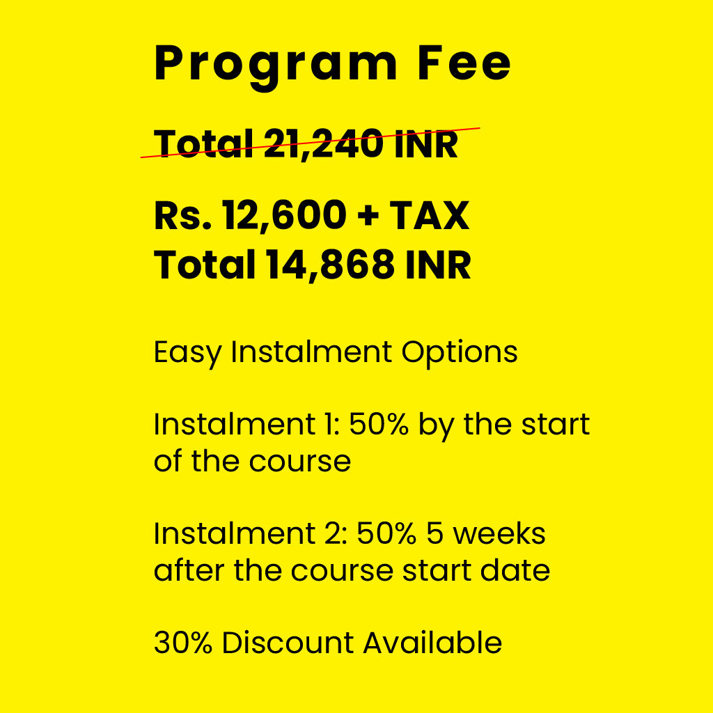 The Program Fee is 12,600 INR + 2,268 INR (18% TAX) = INR 14,868 INR