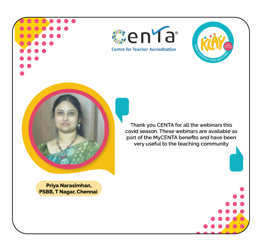 CENTA® has built MyCENTA- an online thriving and rapidly growing community of teachers. The platform includes free learning resources, webinars & masterclasses and job opportunities. 5,00,000+ teachers, 90,000+ schools, 6000+ locations